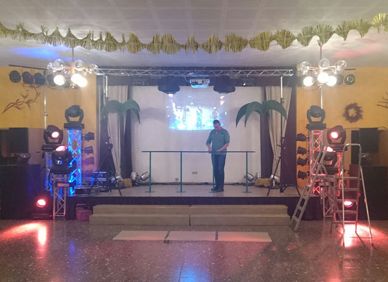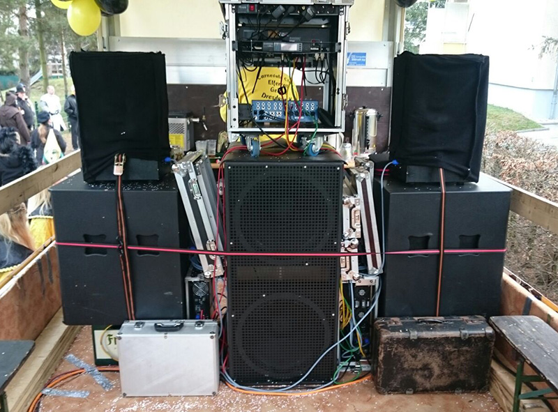 Auch beim Fasching geht es nicht ohne Technik. Zu jeder Veranstaltung gehört natürlich eine ordentliche Beleuchtung der Aktiven und ein guter Ton dazu. Das ist die Aufgabe der Techniker. Am Anfang beschränkte sich das bei uns auf die Bedienung eines analogen 4-Kanal Lichtpultes mit 8 Lampen und einem 500 Watt Verfolger. Der Ton wurde vom DJ abgesichert. Um die Qualität für unsere Gäste zu erhöhen und unabhängig zu werden, haben wir damals die Erweiterung der eigenen Ressourcen beschlossen. Jedes Jahr wird ein Teil der Einnahmen für diese Aufgabe abgezwackt. Sponsoren wurden gesucht und externe Veranstaltungen betreut. Jetzt sind wir in der glücklichen Lage, alle möglichen Events aus eigenen Beständen zu beleuchten und zu beschallen.